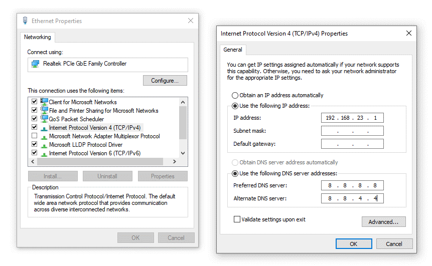 The solution is we can replace the dynamic IP with a static IP which we have to manually set in the following way: