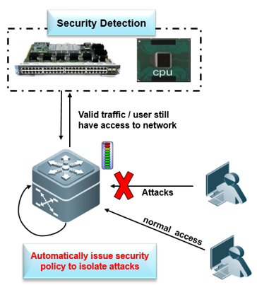 ○ massive attack traffic directed to the CPU, occupying the entire CPU bandwidth. In this case, normal protocol trafc and management trafc cannot be processed by the CPU, causing protocol or management failures. Forwards on data fields will also be affected and the whole network will be abnormal.